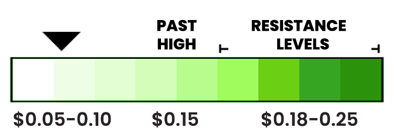 If the stock absorbs supply around $0.05–$0.06, the next expansion band historically opens toward $0.08–$0.10.